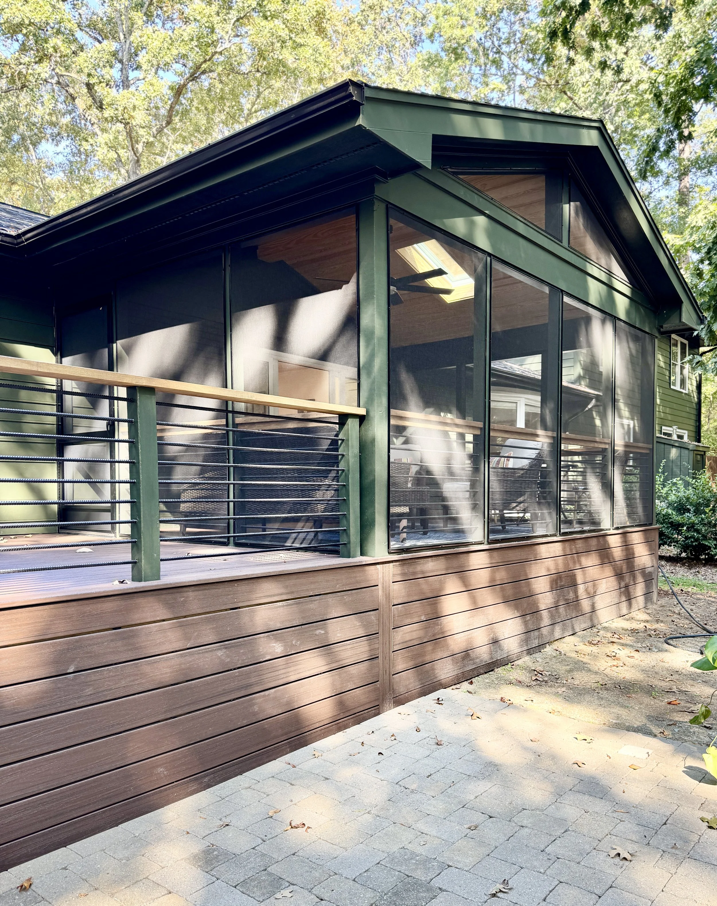 When the homeowners moved in they knew a kitchen renovation was must. Both approaching 6 feet in height, one is cook, the other is a baker, and neither of them could function in the old cramped, dark, and poorly designed kitchen. In addition there was next to no pantry space, the mudroom was tiny, the powder room was unnecessarily large, and there were no good sight lines into the adjacent spaces from the kitchen. They also knew if they were going to survive the muggy, buggy, North Carolina summers, they were going to need a screened porch because they both love to be outside.